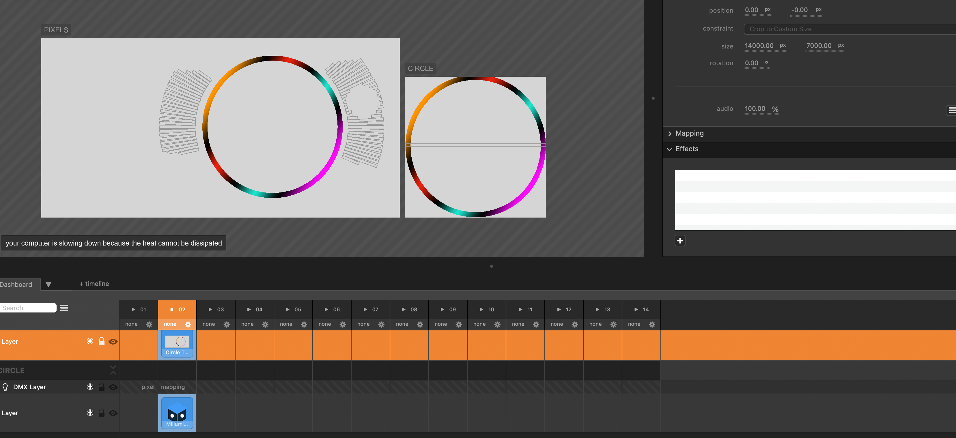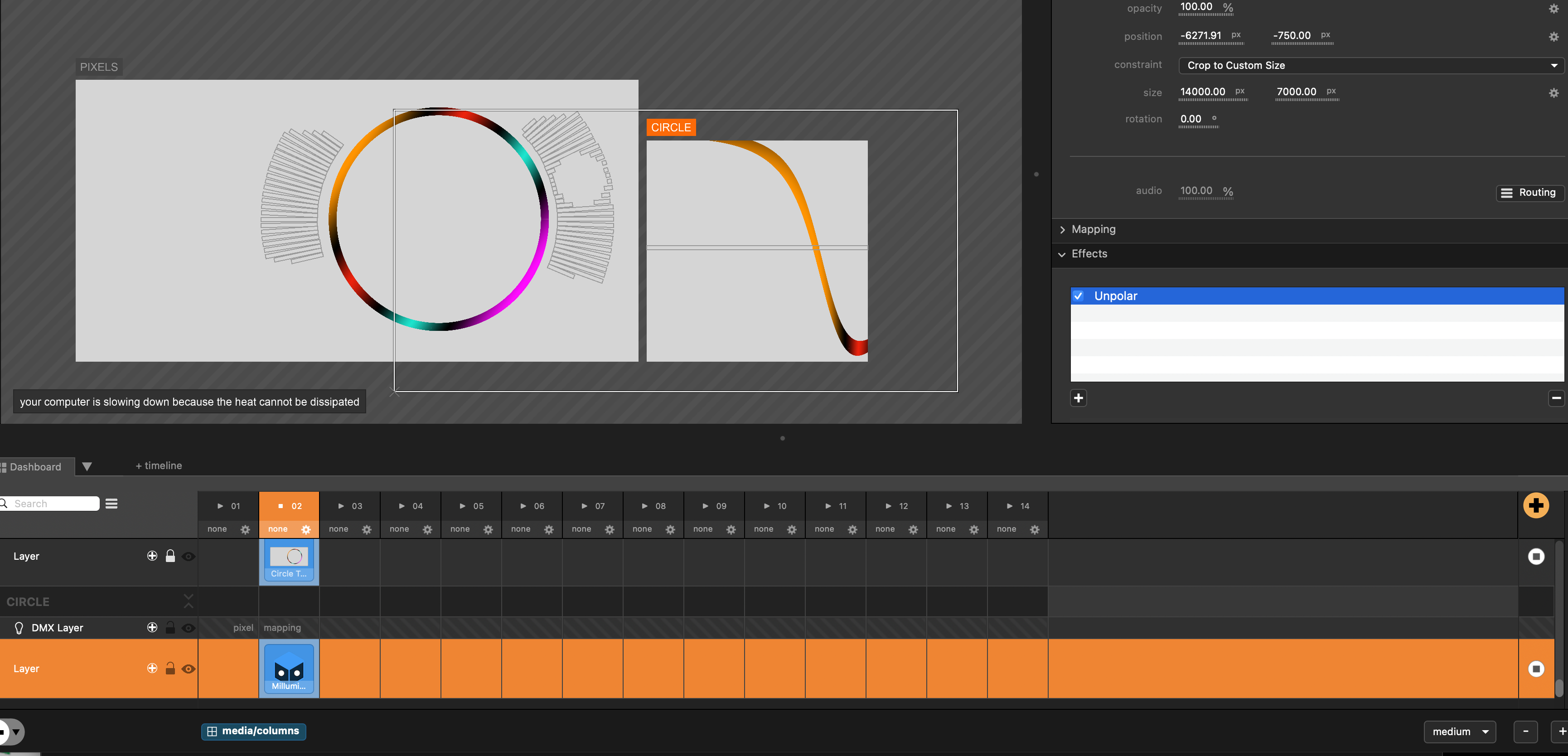I tried to have a separate Canvas (squared, size of the circle I have to represent) receiving via Syphon the main Media.