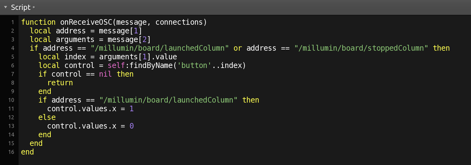 I would love to be able to have a feedback of a selected (running) column on the corresponding button in TouchOSC. Is this possible? I did try the examples in the dev-kit where it's possible to have feedback of a selected layer, but not a column.