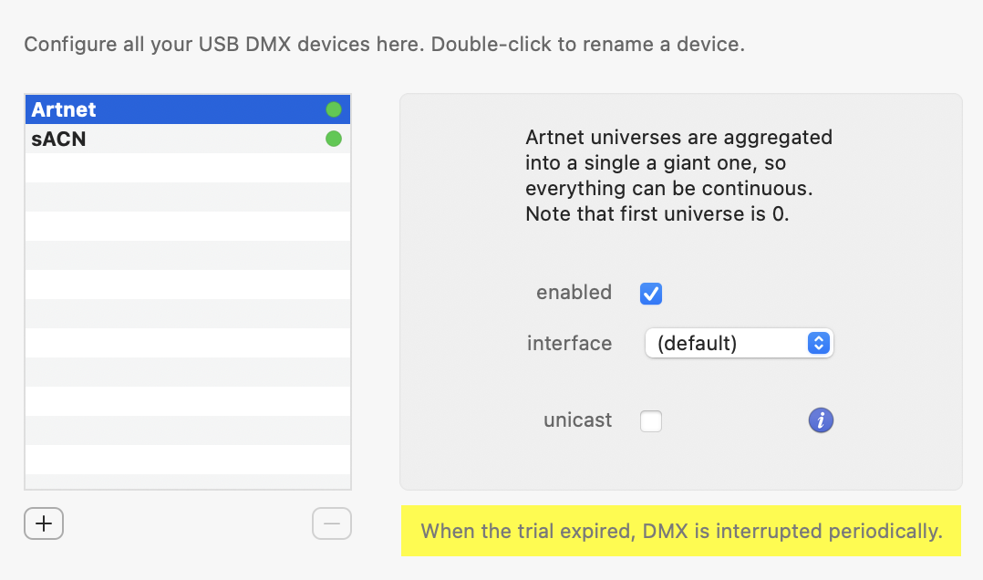 I'm having issues with DMX output via Art-Net. In particular, all DMX channels drop to zero a few seconds after any light state is played. It looks like the scene has some kind of playback length that I can’t find anywhere.